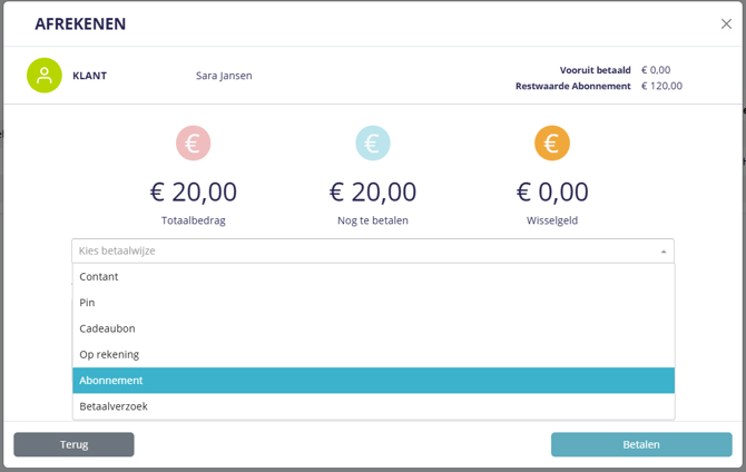 - Bij de betaalmethode kies je voor 'Abonnement'.