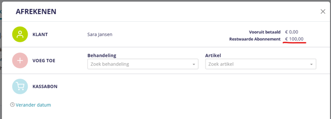 - Dan zie je rechtsboven in de Restwaarde van het abonnement staan.