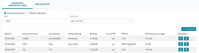 Klik op 'Toevoegen' in de rechterbovenhoek om een inkoopfactuur toe te voegen. Vul alle benodigde gegevens in.