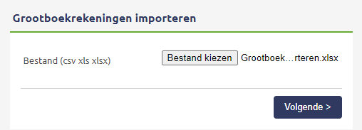 - Klik vervolgens op 'Bestand kiezen'. Kies nu het excel bestand die je zojuist hebt gedownload en klik op 'Volgende'.