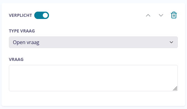 - Per vraag kan je aangeven of deze vraag verplicht is of niet. Bij de vragen heb je de keuze uit: