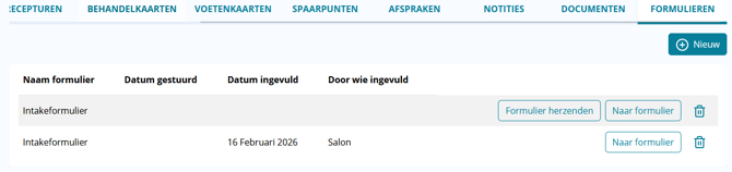 - Zien welke formulieren naar de klant zijn gestuurd en welke ingevuld zijn