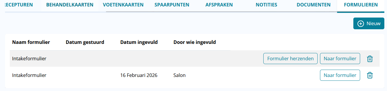 - Hier zie je alle formulieren die naar de klant zijn gestuurd of die je zelf hebt ingevuld.