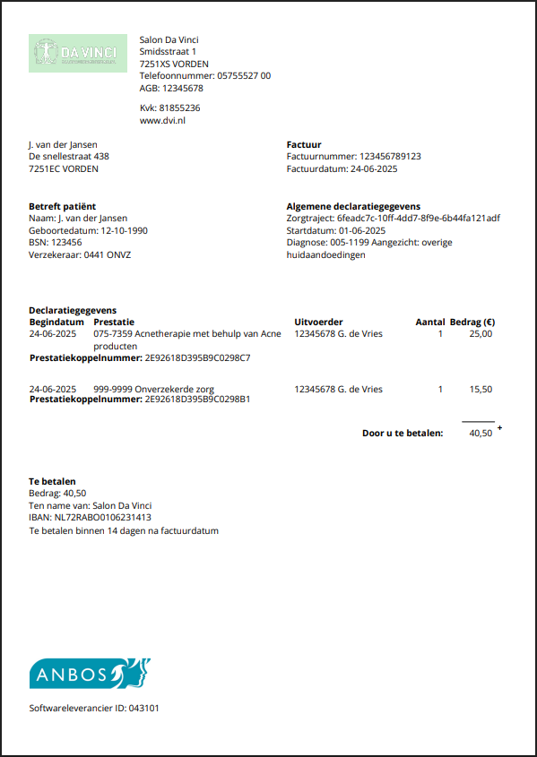 Stel alles goed in zodat je een verzekeringsfactuur (restitutienota) kan aanmaken.