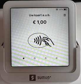 - Dan zal de SumUp Solo oplichten met het te betalen bedrag.