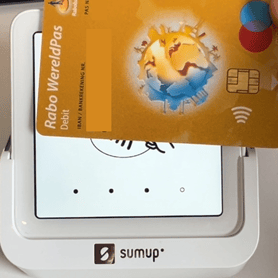 - De klant kan de pinpas voor het apparaatje houden of bovenin insteken.