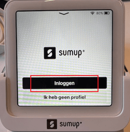 - Log nu in op het SumUp apparaat met je SumUp account. LET OP: log dan wel in met het SumUp account die je hebt aangemaakt via onze link zodat je de goede tarieven hebt.