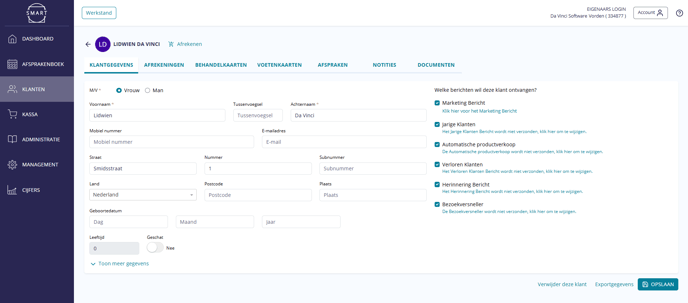 - Je kan hier alle gegevens die je van je klant hebt invullen.