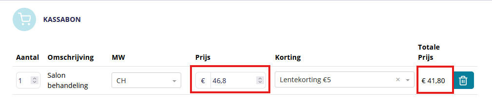 - De korting wordt dan automatisch toegevoegd en berekend.