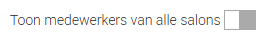 Heb je meerder filialen die aan elkaar gekoppeld zijn in SMART Salon? Dan kan je ook op deze pagina al je medewerkers zien in plaats van de medewerkers per salon. Zet het vinkje dan aan met de tekst: 'Toon medewerkers van alle salons'. Het vinkje staat bovenaan de pagina.