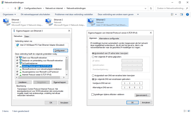 - Vul de DNS-serveradressen is en klik op OK (8.8.8.8 en 8.8.4.4)