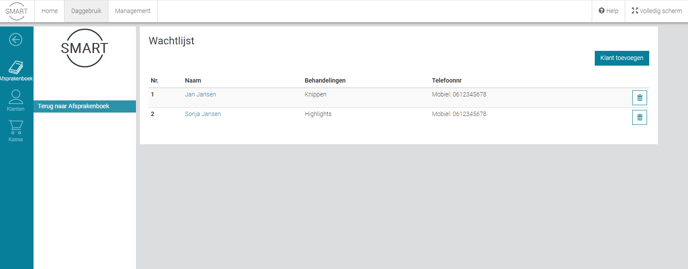 - Wachtlijst - klanten op de wachtlijst zetten voor als er een plek vrijkomt