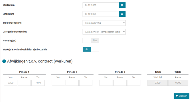 Vul nu de extra werktijden in van de medewerker op die dag