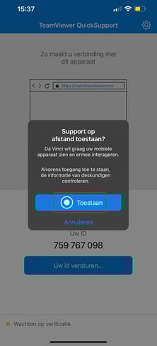 - Klik dan op 'Toestaan' op de vraag of Quicksupport je meldingen mag sturen.