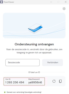 - Er zal een ID en wachtwoord tevoorschijn komen. Geef het ID en wachtwoord door aan ons.
