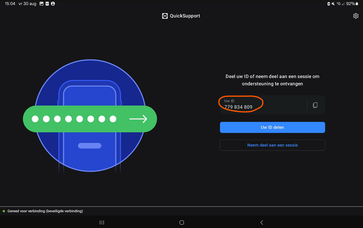 - Nu kunnen we meekijken op je mobiel of tablet. We kunnen zelf nergens op klikken, we kunnen alleen zien wat jij ziet op je scherm.