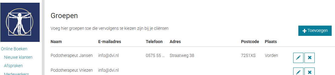 Maak als eerste de groepen aan (bijvoorbeeld het verzorgingstehuis of de podotherapeut).