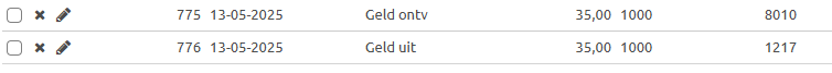 - Na de afrekening worden er 2 regels aangemaakt in e-Boekhouden.nl