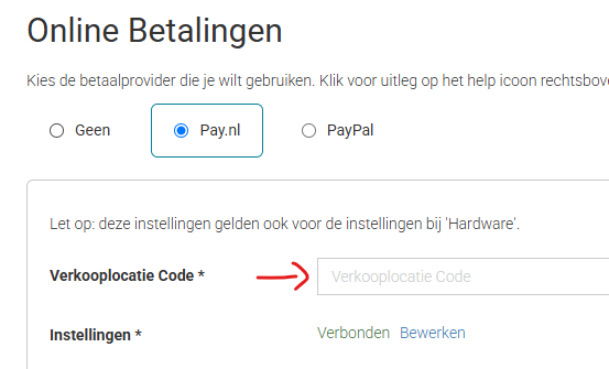 Ga vervolgens weer terug naar je Pay.nl account. Ga naar: Instellingen > Verkooplocaties.