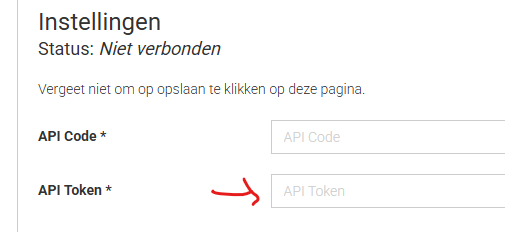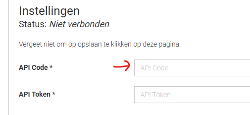 Klik vervolgens op de knop 'Bewerken'. Hier moet je de API code en API Token nog invullen.