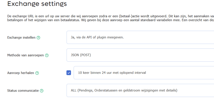 Scroll dan helemaal naar beneden naar de Exchange settings. Zet deze instellingen op de volgende: