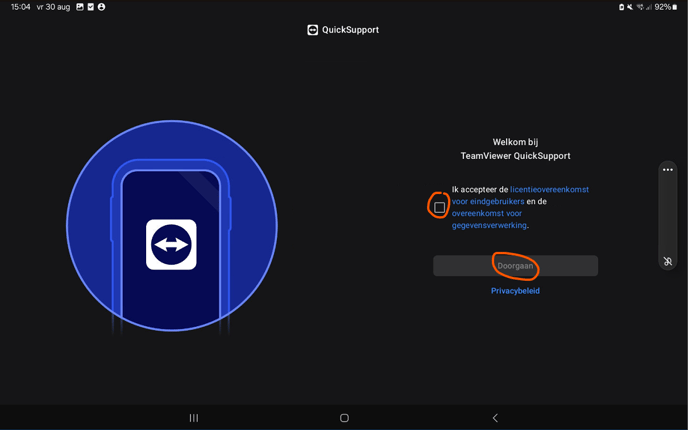 - Download Teamviewer Quicksupport via de Google Play Store (klik op de knop hierboven).