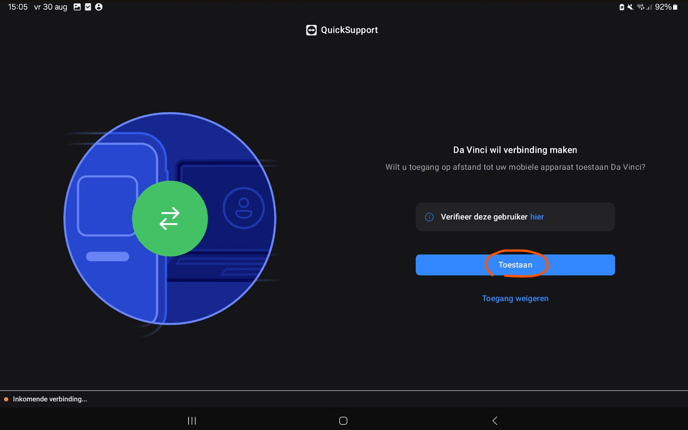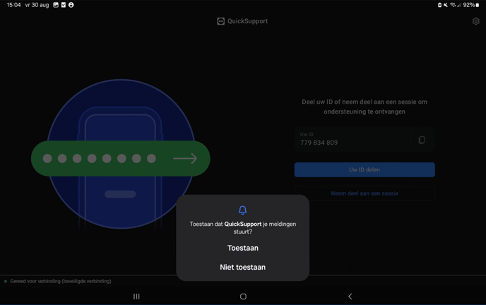 - Klik dan op 'Toestaan' op de vraag of Quicksupport je meldingen mag sturen.